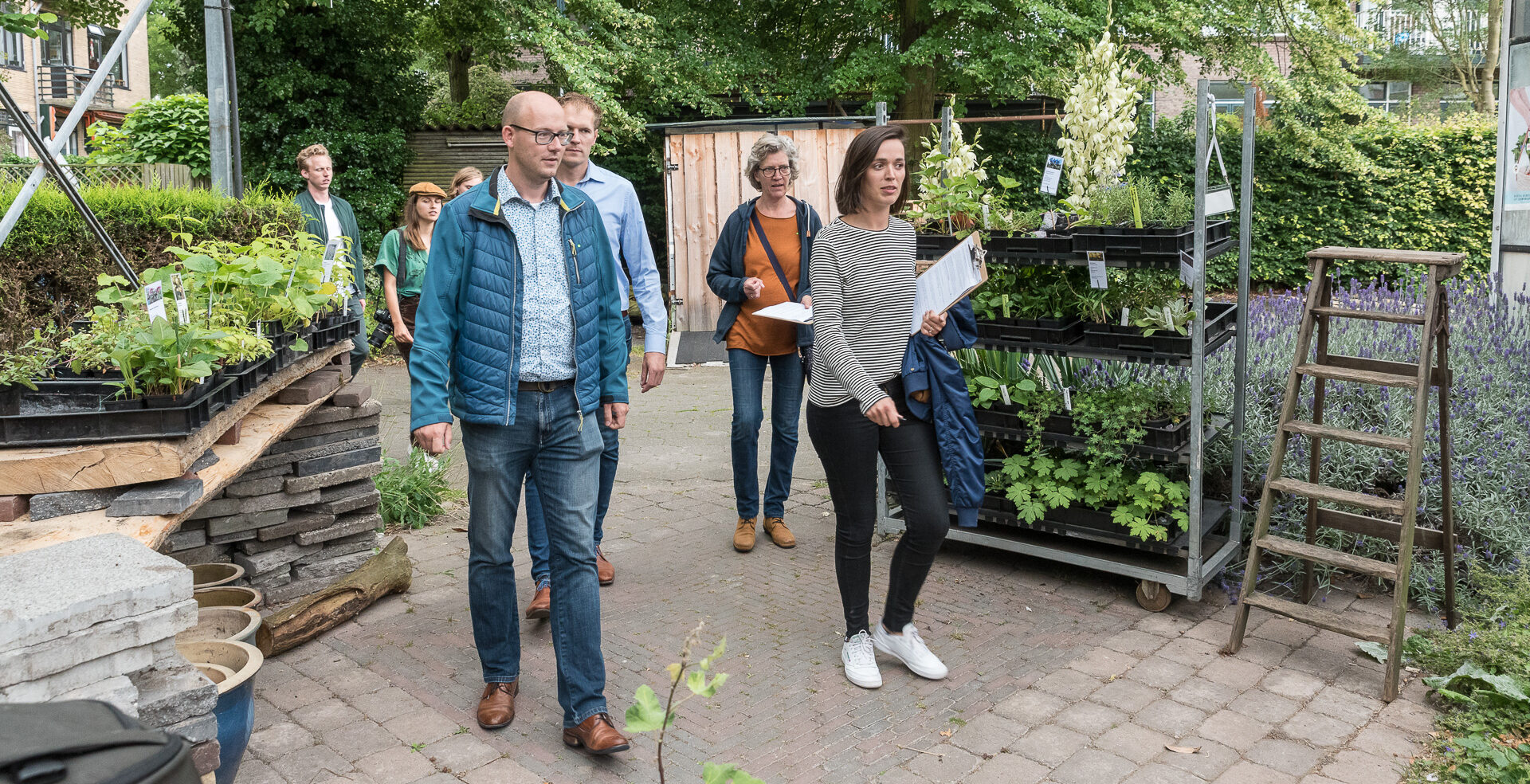 We lopen een rondje met je over het terrein van Stadskwekerij De Kas. Er wordt stilgestaan bij allerhande huis-tuin-en-keukenmaatregelen en experimenten rondom de thema’s biodiversiteit en regenwater.